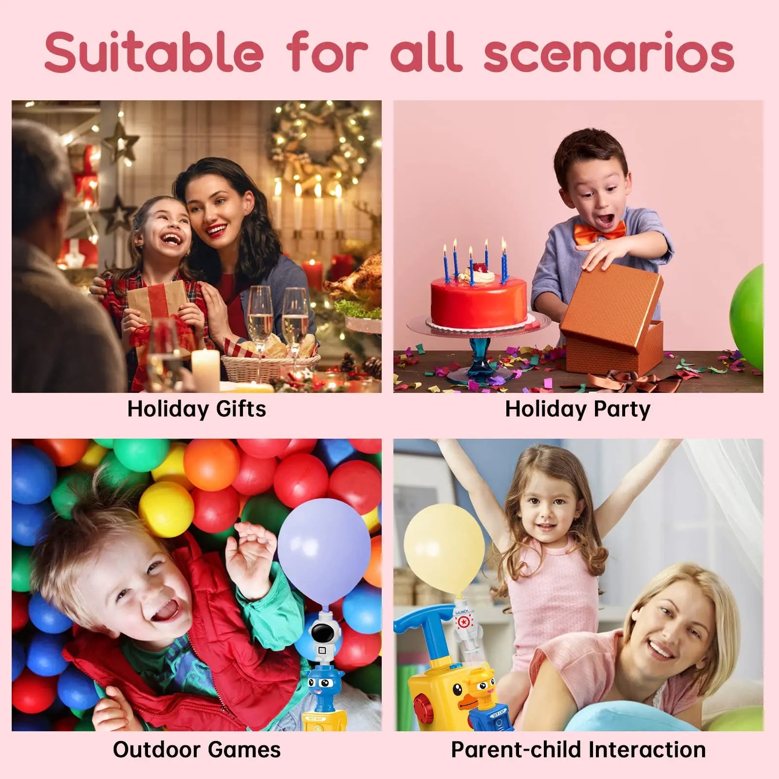 Jucăria Lansator de Baloane pentru Copii oferă o combinație interesantă de distracție și educație, fiind un cadou perfect pentru mințile tinere și curioase. Această jucărie inovatoare combină o mașină robustă și colorată cu acțiunea palpitantă a baloanelor rachetă, alimentată de o pompă ușor de utilizat. Ideală pentru activități de petrecere sau ca instrument captivant pentru educația preșcolară, nu numai că distrează, dar introduce și principii de bază ale științei și aerodinamicii. Setul include materiale durabile, sigure pentru copii, asigurând ore întregi de joacă în siguranță. Este o modalitate excelentă de a încuraja învățarea prin joacă, fiind un cadou atent și educativ pentru copii.