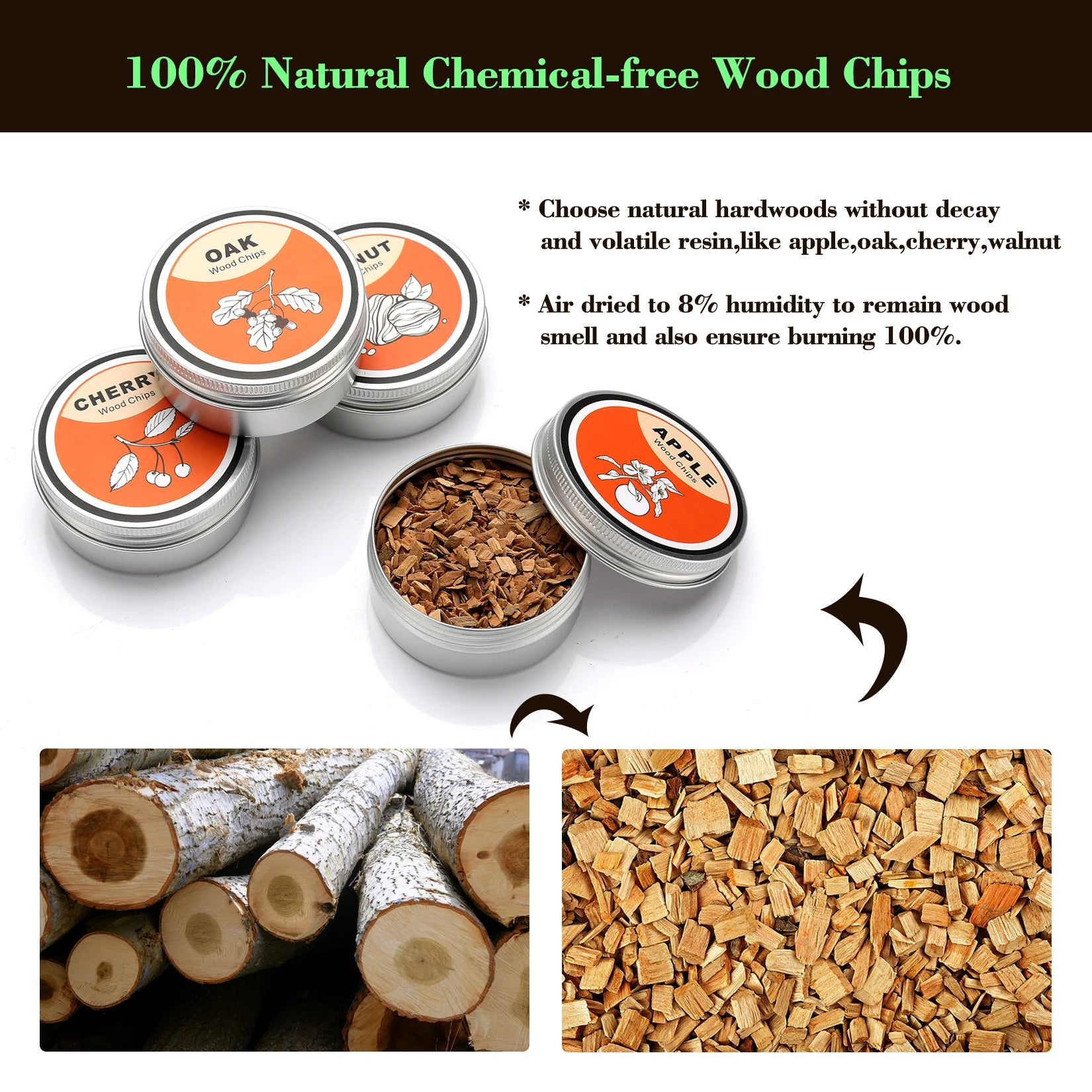 Transformă-ți băuturile sau cocktailul într-o experiență, nu doar într-o băutură. Este ceva fascinant în a privi fumul bogat și aromat cum se învârte prin pahar, infuzând fiecare înghițitură cu arome profunde și complexe. Acest kit pentru afumarea băuturilor îți permite să creezi acasă băuturi afumate de calitate bar, adăugând o notă de dramatism, măiestrie și gust îndrăzneț fiecărei turnări. Cu patru varietăți premium de așchii de lemn - stejar, cireș, măr și hickory - poți personaliza aroma băuturii tale, făcând ca fiecare creație să fie unică pentru tine. Indiferent dacă savurezi un cocktail tradițional, bourbon sau artizanal, acest kit transformă obișnuitul într-un ritual de neuitat. Pentru că băuturile grozave nu se prepară doar, ci se experimentează.