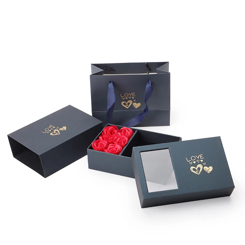 Îmbunătățește-ți surpriza de Ziua Îndrăgostiților cu rafinata noastră Cutie Cadou cu Trandafiri, concepută cu grijă pentru a-ți exprima cele mai profunde afecțiuni. Acest pachet fermecător conține un delicat Colier cu Inimă din Iarbă cu Patru Foi, un simbol al norocului și iubirii, amplasat într-o cutie de inele fermecătoare. Creată cu o atenție meticuloasă la detalii, această cutie cadou este chintesența romantismului și eleganței, perfectă pentru a o face pe prietena sau soția ta să se simtă cu adevărat specială. Fie că este vorba de o declarație de dragoste sau de o celebrare a legăturii voastre, acest cadou va crea cu siguranță un moment de neuitat în această zi a iubirii.